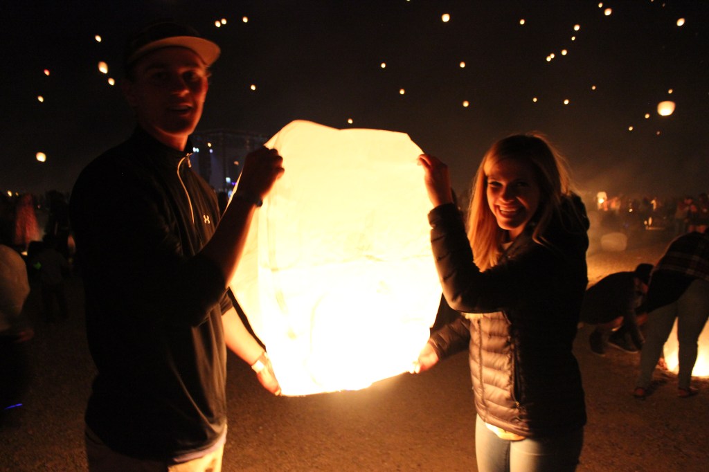 Now, to the actual glowing lantern launch. Once instructions were given out, Taylor and I, and the thousands of other people that were there, released our glowing lanterns. The sky was so beautiful! It was so fun to watch our lantern join in with all the others as they took off into the dark sky. It really was an unforgettable moment and I am so grateful that we went to this lantern festival.